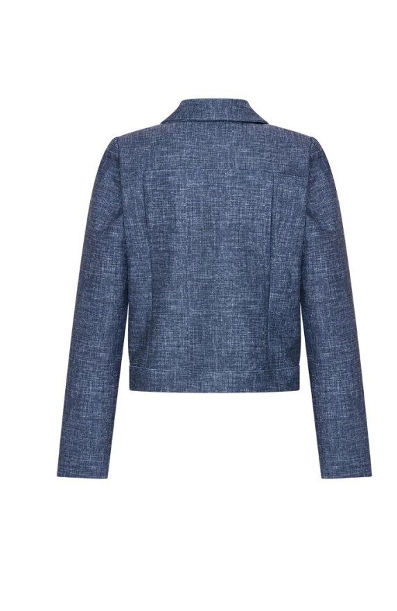 BLAZER JACKY LANO 7738 MATTE MARINE VAN HELENA HART ,deze stijlvolle blazer is uitgevoerd met een knoopsluiting aan de voorkant en praktische zakken, elk afgewerkt met een decoratieve knoop. De elastische band zorgt voor extra draagcomfort en een mooie, aansluitende pasvorm. Dankzij het tijdloze ontwerp is de blazer zowel geschikt voor een zakelijke look als voor een casual-chique outfit. Comfort en elegantie komen perfect samen in dit veelzijdige item.in een prachtige donkerblauwe tint. Deze blazer is een must-have voor elke modebewuste vrouw en perfect voor de Nederlandse zomers.