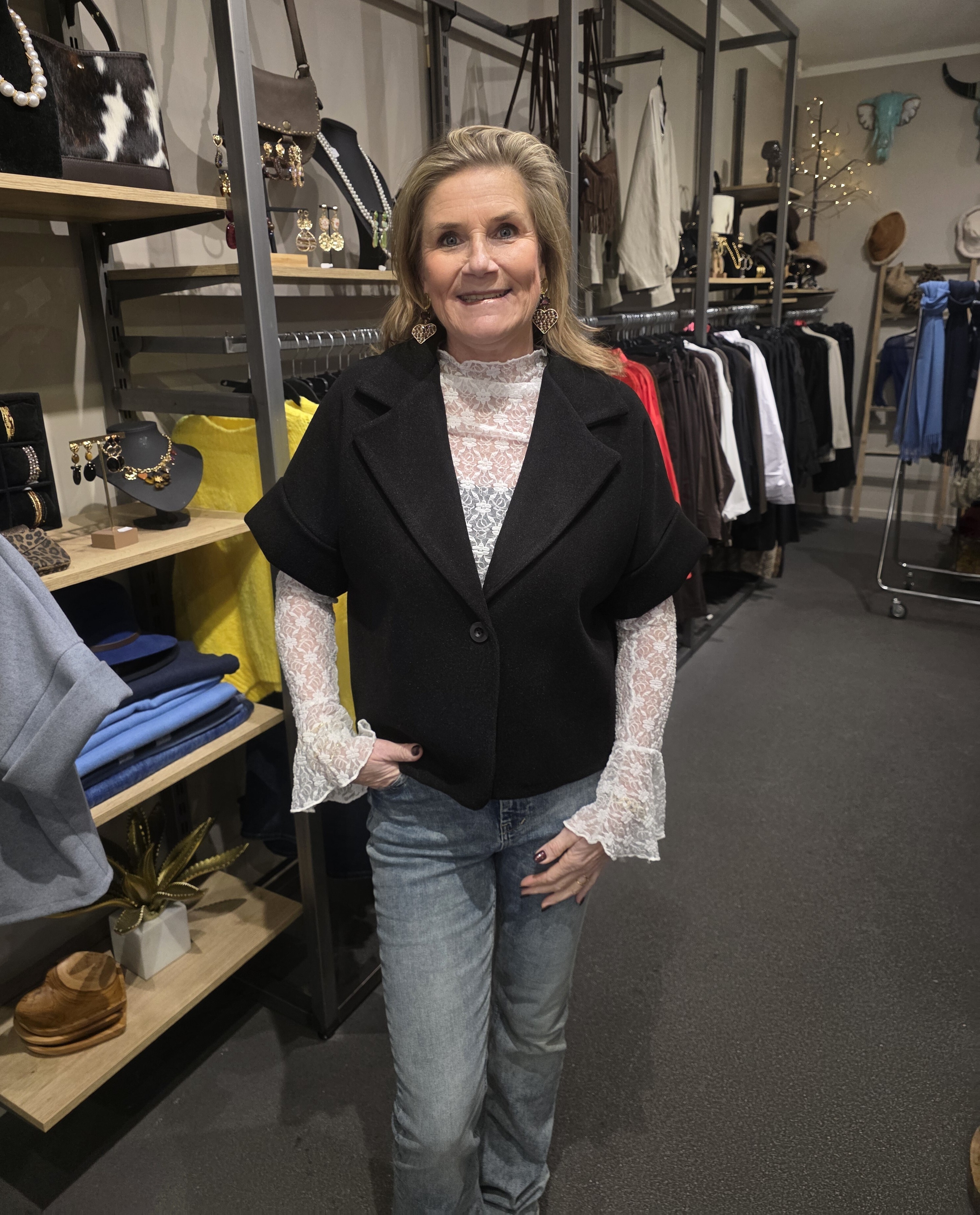 De blazer heeft 2 zakken met klep.