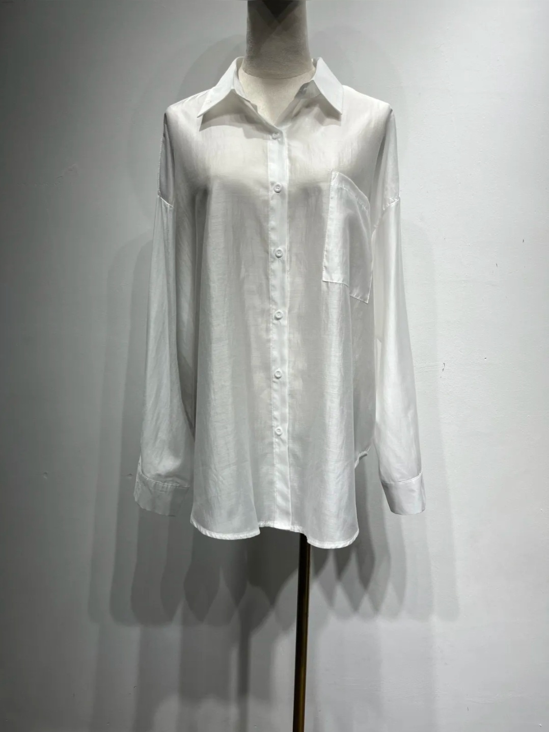 BLOUSE GLANS WIT VAN MOCHY ,een elegante, licht transparante blouse in een witte kleur.Het model heeft een klassieke kraag,een knoopsluiting aan de voorkanten een borstzakje.De blouse is gemaakt van een luchtige,soepelvallendestof die een mooie,vrouwelijke uitstraling geeft.Dankzij het semi-transparante materiaal is dit perfectom te dragen met een top eronder of als stijlvolle layering piece.Geschikt voor zowel casual als meer geklede outfits.