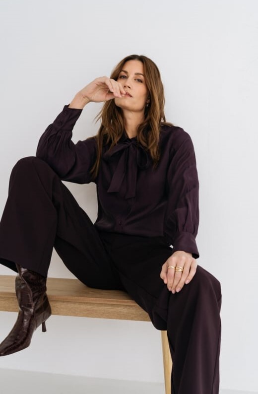 BLOUSE LILO BOW WI25.20.006 PLUMP VAN MAICAZZ .Deze blouse is net weer even anders dan normale blousejes. De Lilo Bow heeft namelijk een strik bij de kraag wat net weer even die originele look geeft aan het design. een chique glans blouse .Dit item is verkrijgbaar in de kleuren sand, plum en antra.