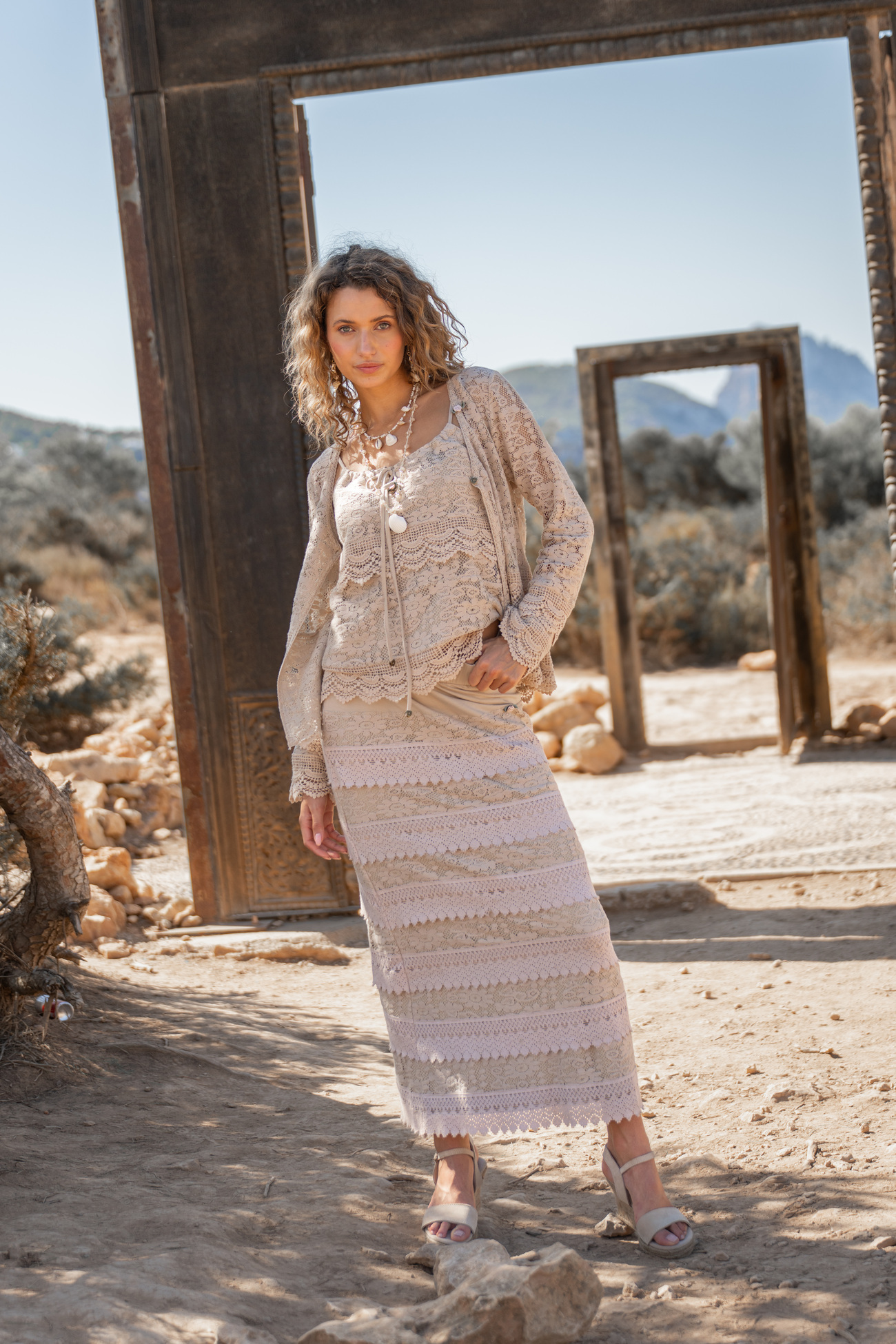 SKIRT LONG LACE KHAKI 8126802KH VAN ISLA IBIZA