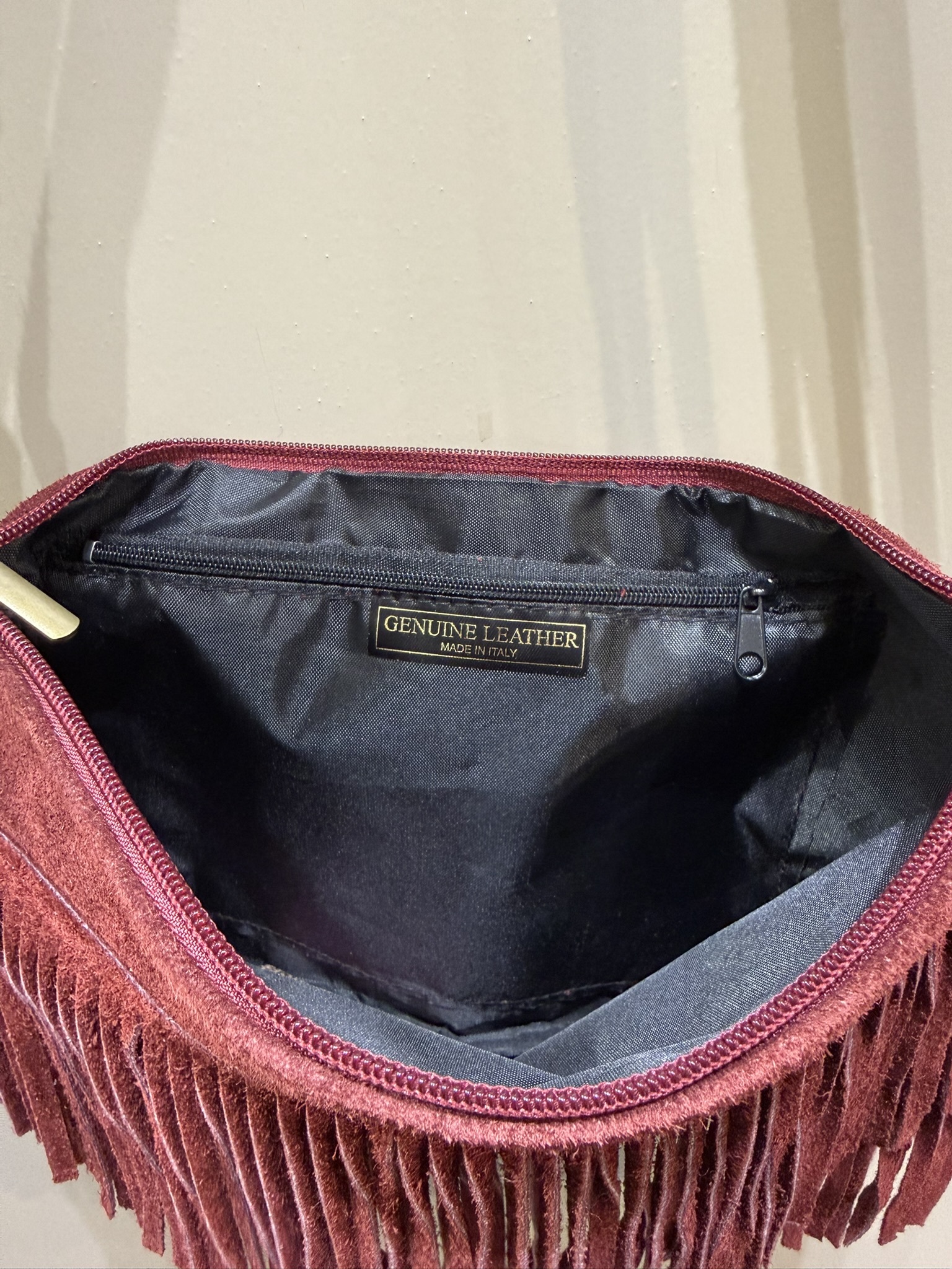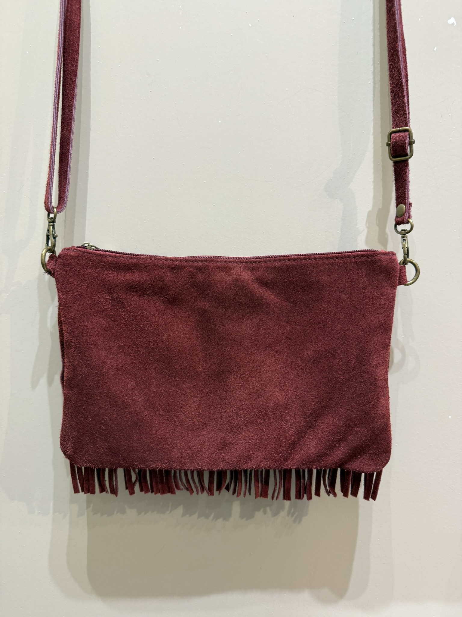 TAS BOHO BORDEAUX, deze prachtige middelmatige schouder tas is tijdloos en chic.De tas heeft een dubbele laag met franjes die speels mee beweegt met elke stap.In de tas zit er nog een binnen vakje met rits.