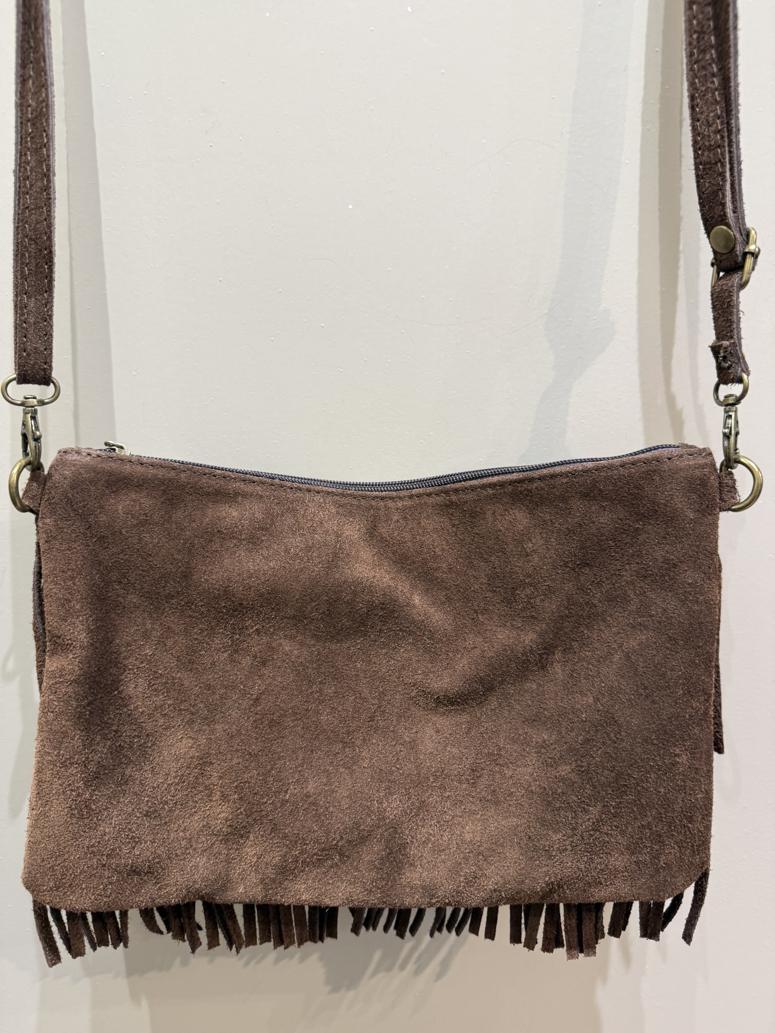 TAS BOHO BRUIN ,deze prachtige middelmatige schouder tas is tijdloos en chic.De tas heeft een dubbele laag met franjes die speels mee beweegt met elke stap.In de tas zit er nog een binnen vakje met rits.