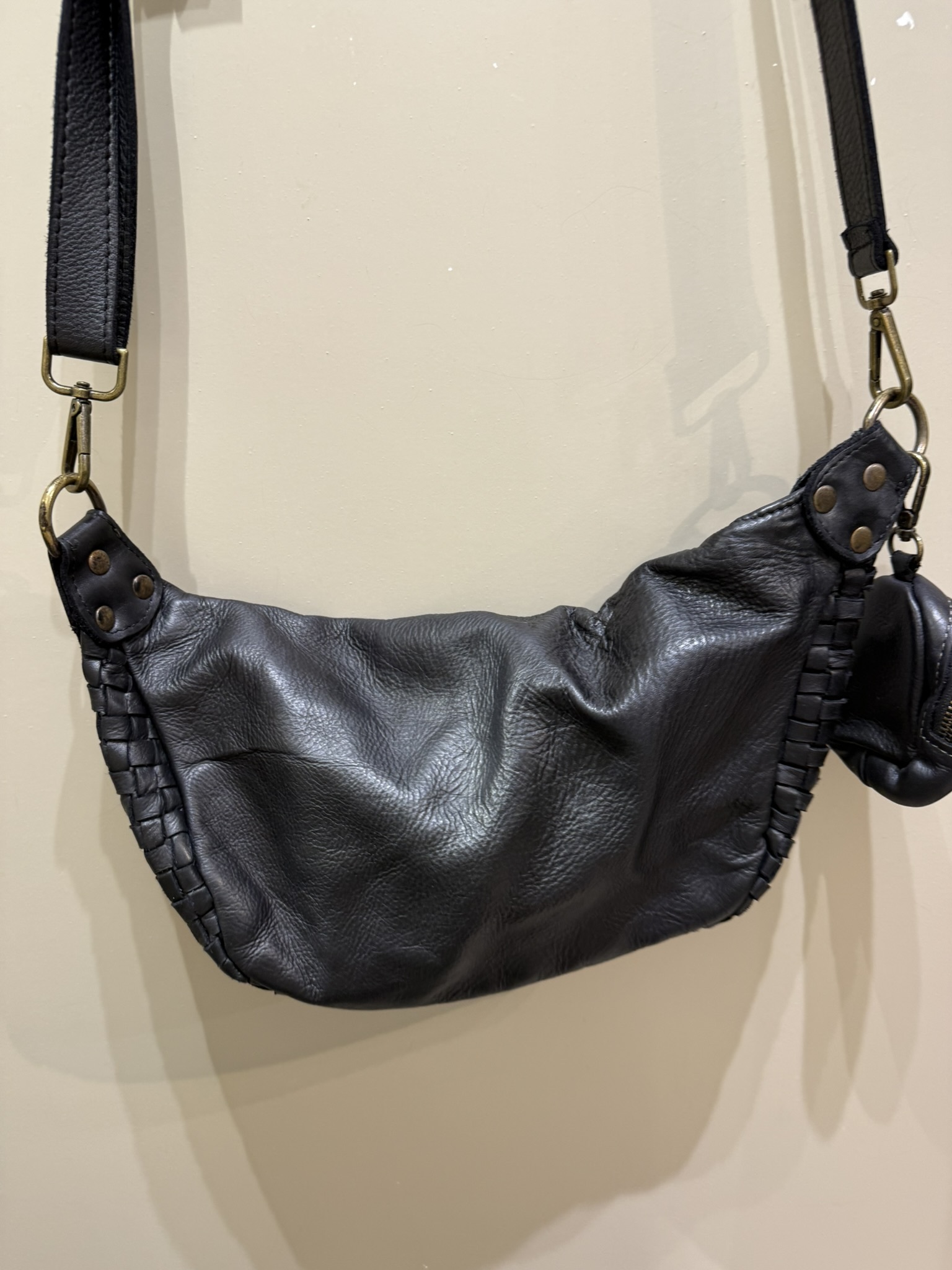 • De tas heeft een gevlochten leren patroon,hij heeft aan de binnenkant nog een vakje met een rits. Aan de tassen riem zit ook nog een klein portemonnee.
