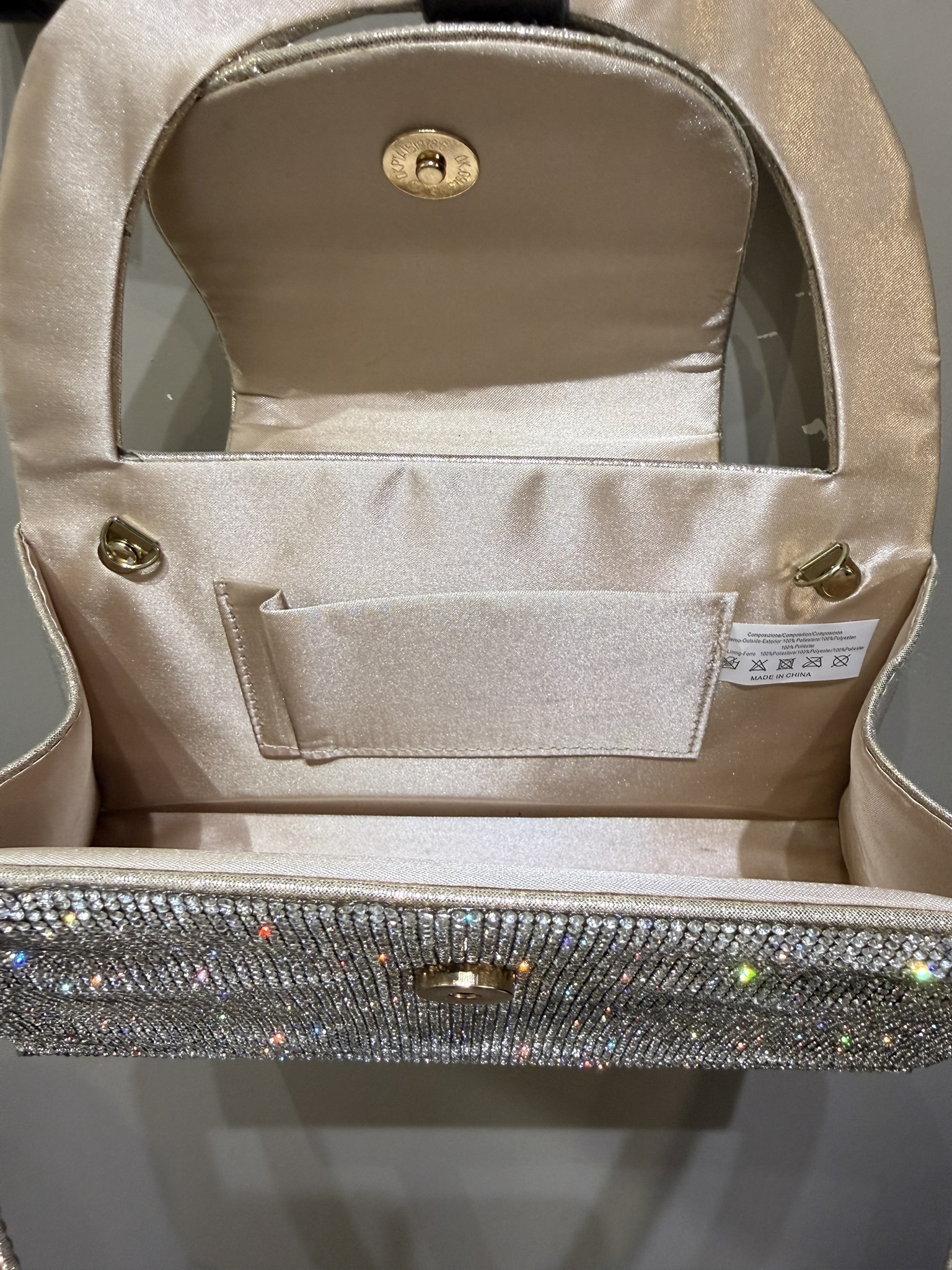 TAS GLAM ROSE, is een elegante handtas met de voorkant volledig bedekt met glitter steentjes die bij elke beweging schitteren. De achterkant heeft een rose kleur met subtiele glitters erin.Je kan de tas aan de gebogen handgreep vasthouden of de gouden ketting eromheen doen. De tas is perfect voor een gala, feestjes of wanneer je gewoon wilt stralen. kleur: rose maat: 13cm bij 23cm