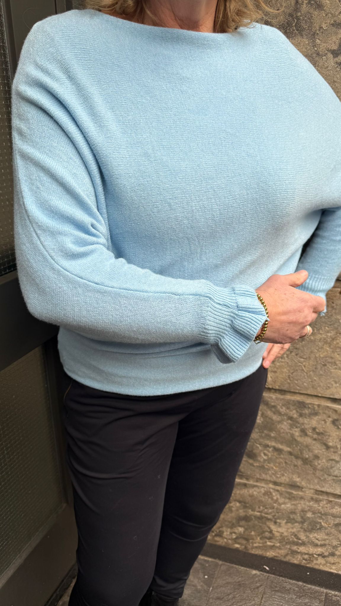 𝐕𝐥𝐞𝐞𝐫𝐦𝐮𝐢𝐬 𝐭𝐫𝐮𝐢 – 𝐨𝐧𝐞 𝐬𝐢𝐳𝐞 Deze stijlvolle vleermuistrui is geschikt voor één maat, t/m maat 44. Een heerlijk veelzijdig model dat je op verschillende manieren kunt dragen: casual of chic, over een blouse of lekker off-shoulder voor een nonchalante look.