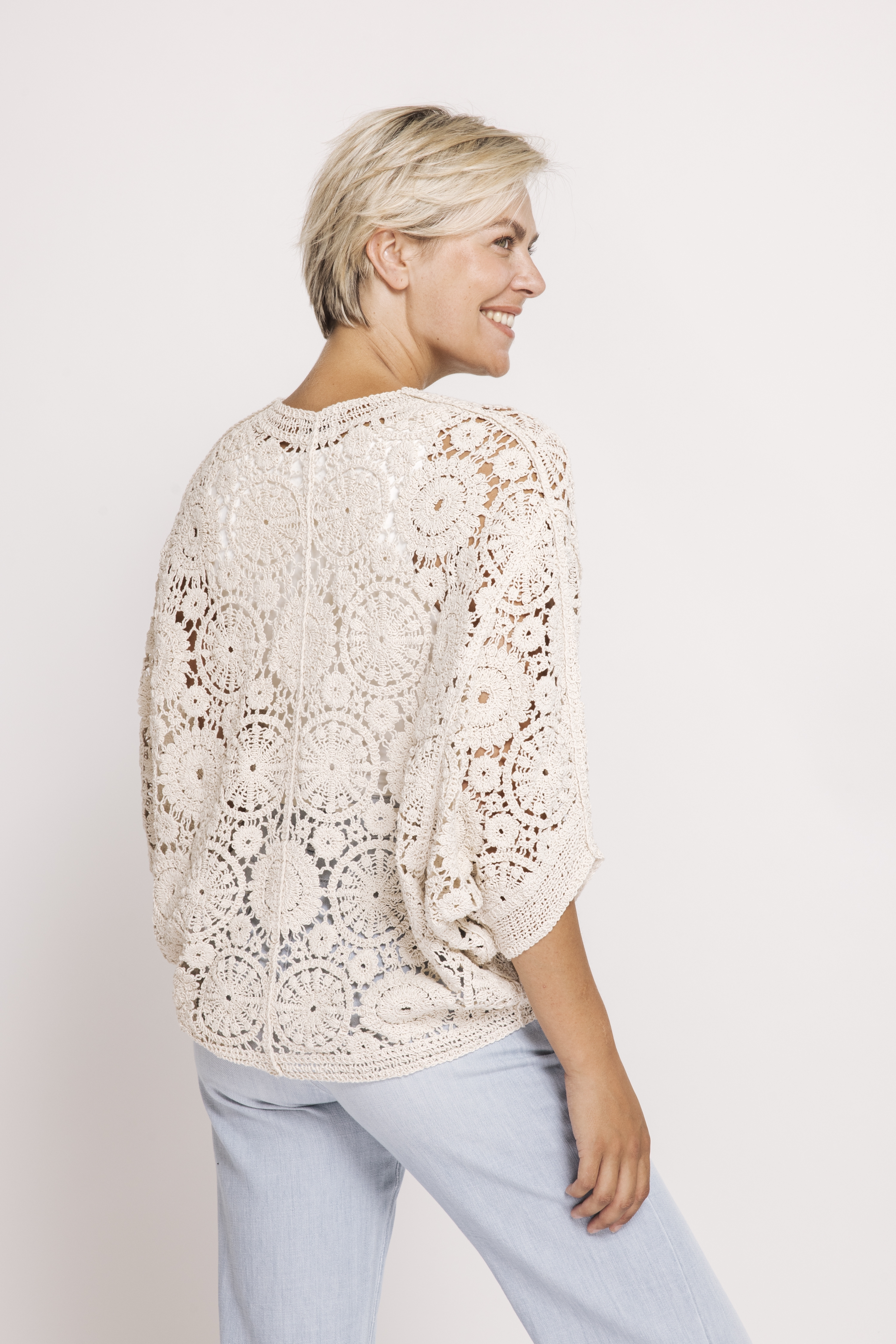 De lichte kleur vangt het zonlicht mooi en geeft elke outfit die typische boho-touch waar Ibiza om bekendstaat. Ideaal voor koele avonden, een terras bij zonsondergang of gewoon omdat je er goed uit wilt zien zonder moeite.